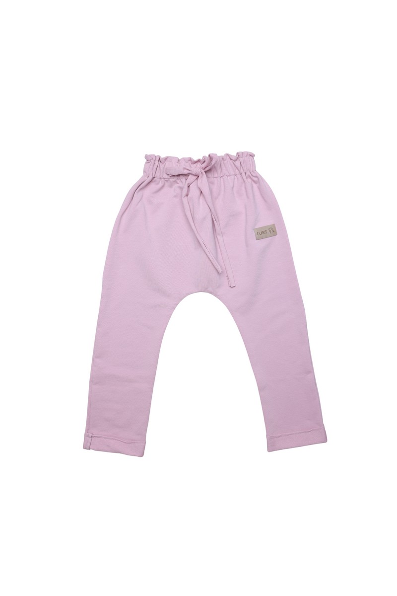 Spodnie typu baggy z delikatnie opuszczonym krokiem z najnowszej jesiennej kolekcji SS2025. Posiadają ozobny pas z kokardką oraz nogawki wykończone podwinęciem.