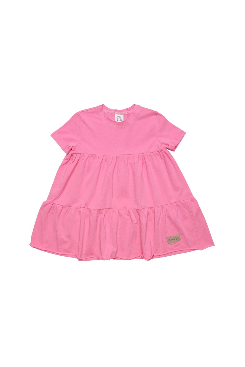Lea sukienka z dwiema falbankami w wersji na krótki rękaw wykonana z cieńszej dzianiny, w kolorze CANDY PINK.